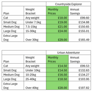Below you can find the monthly prices and savings for your pet based on their weight.